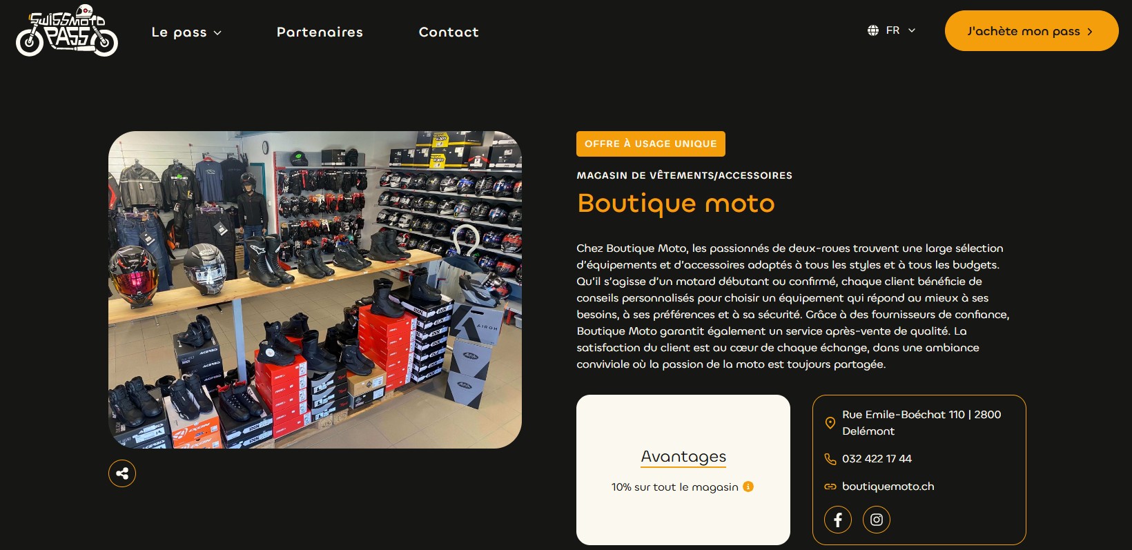 BOUTIQUE MOTO : ton magasin spécialisé pour la moto et les deux-roues à Delémont : accessoires, équipements, sécurité,… C’est l’endroit idéal pour trouver ton équipement moto, ton casque, tes bottes, etc. et venir les essayer sur place, pour commander la bonne taille et le style qui te convient!